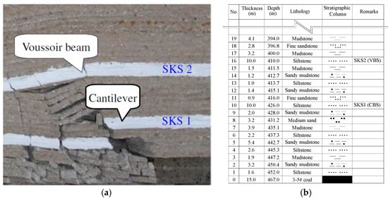 Diagram of the structural characteristics of key strata: (a) The structural features of VBS and CBS [24]; (b) Borehole column and the KS location of LTCC-west8101.