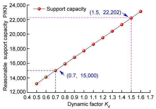 The reasonable support capacity under different dynamic factors of the main roof.