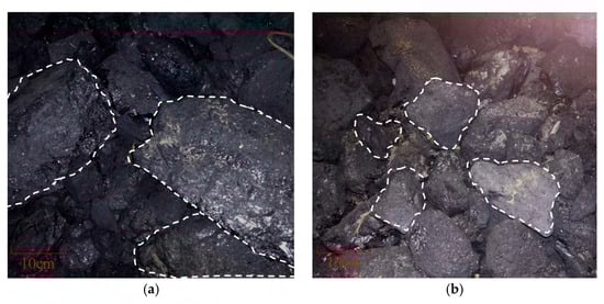 The crushing effect variation of top-coal before and after the measure being applied: (a) Before measuring; (b) After measuring.
