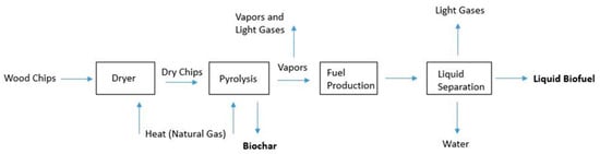 Schematic diagram of liquid biofuels production via pyrolysis with biochar co-product.