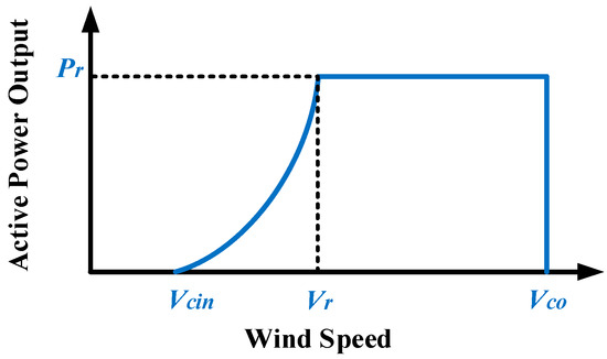 where V, Vcin, Vco, Vr and Pr represent the wind speed, down-cutting speed, up-cutting speed, nominal wind speed and its rated power, respectively.