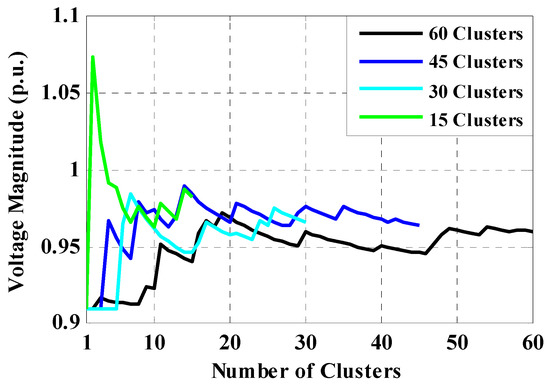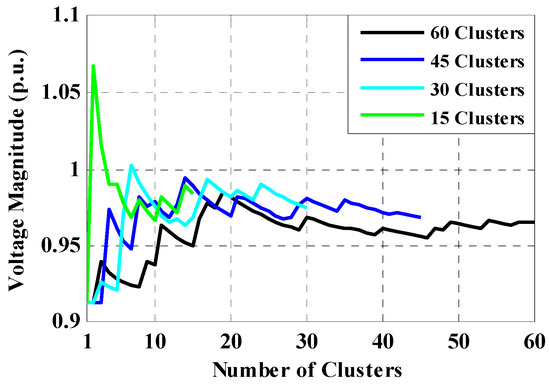 Furthermore, analysis of the obtained results revealed that increasing the number of clusters increases the run-time computation; however, it obtains more efficient results for the voltages of the buses. On the other hand, decreasing the number of clusters reduces the run-time computation in the clustering process; this covers the aim of this paper completely, but the problem is the voltage magnitude in the buses. The low number of clusters probably gets unacceptable voltage magnitudes for the buses. A compromise which obtains the optimal number of clusters for an accurate analysis could improve the operation process of the proposed method. Generally, the assessment of the optimal number for clusters was not the focus of this study, but it should be considered for future works.