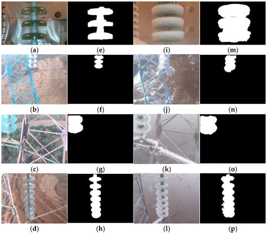 The four groups of insulator images include images without ice and that with ice. Their segmentation results using GrabCut are shown in