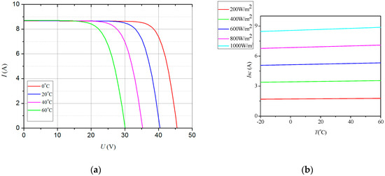 (a) Electrical characteristics of silicon-based solar modules under different temperatures; (b) Electrical characteristics of silicon-based solar modules under different solar irradiance conditions.
