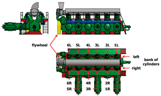 The investigated engine, type GMVH-12, is a twelve-cylinder, two-stroke gas engine driving three-cylinder gas compressors by common crankshaft system (Figure 1). The composition of the fuel is presented in Table 1.