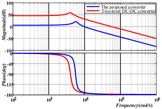 The Bode diagram of the duty cycle to output voltage open-loop transfer function is shown in Figure 10. According to Figure 10, the crossover frequency of the proposed converter is higher than that of the traditional two-level converter due to smaller inductance.