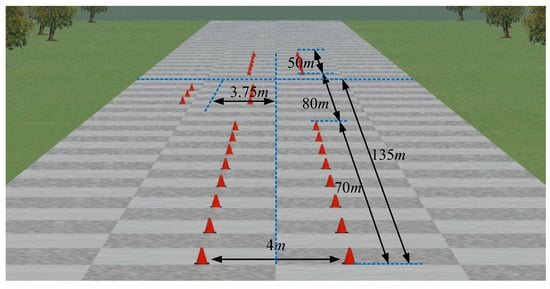 The adhesion coefficient of the joint road was initially set to 0.75 and suddenly changed to 0.1 when the vehicle was about to complete the final steering operation at a distance of 135 m from the starting position, as shown in the Figure 7. The speed of the vehicle remained constant at 72 km/h during the DLC maneuver. The simulation results are shown in Figure 9.