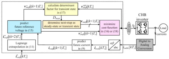 Block diagram of the proposed finite-control-set model predictive control (FCS-MPC) method for a multilevel CHB inverter.