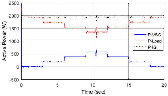 Active power of load, VSC and SEIG for Scenario 3.