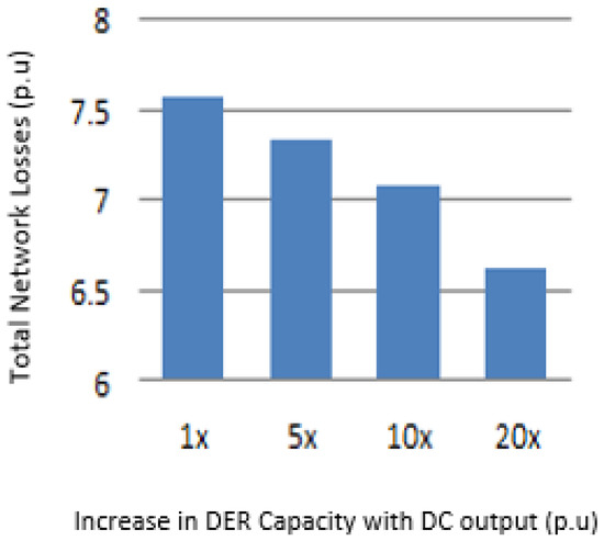 Figure 5 shows the results of a case study by considering Scenario (3) as a base case. Considering an increase in generation of DER connected on a DC network results a decrease in overall network losses, while assuming DER at AC network, AC and DC network loads to be constant.