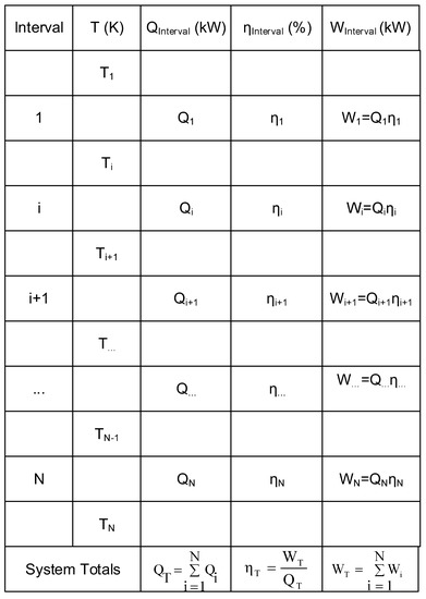 This section presents an algebraic procedure to calculate the maximum amount of power generated from a heat source profile comprised of multiple streams. The procedure takes the form of a problem table algorithm and is similar in structure to approaches available for heat integration [7]. The maximum power generation can be quickly determined with the procedure, which involves only a few very quick calculations and can easily be completed in a spreadsheet.