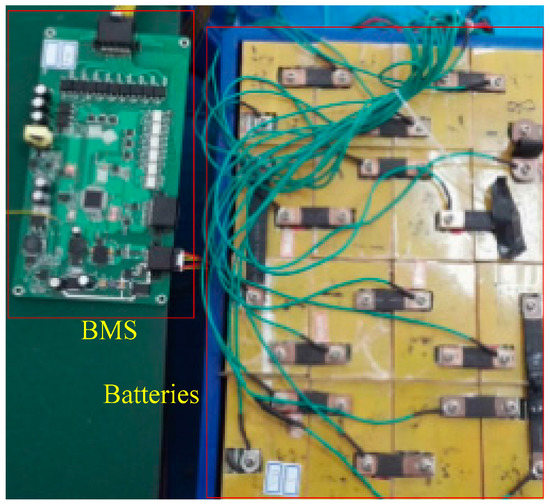 From the above comparison of the different equalisation schemes, the simplified equalisation scheme has simpler structure and higher equalisation speed. Thus, an experiment has been designed to implement the simplified equalisation scheme. An equalisation principle prototype was established. The parameters are the same as that of the simulation. Figure 12 shows the experimental device. The equalisation circuit is integrated with the battery management system (BMS). The control strategy is also implemented by the BMS.