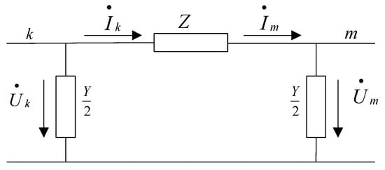 In a power system, transmission lines can be seen as middle-length transmission and the conductance do not need to take into account, then the equivalent circuit of transmission lines is as shown in Figure 1. In this figure, Z indicates impedance and Y/2 indicates admittance. Based on Kirchhoff’s law, we can get: