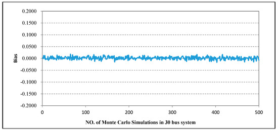 The viability and effectiveness of the proposed method is established by means of installing different numbers of PMUs. As can be seen from Table 7, the more number of PMU the power system has, the better estimation accuracy and stability can obtain. For bias, it can be observed in Figure 16 that the estimator with proposed mixed method has the good unbiased performance.