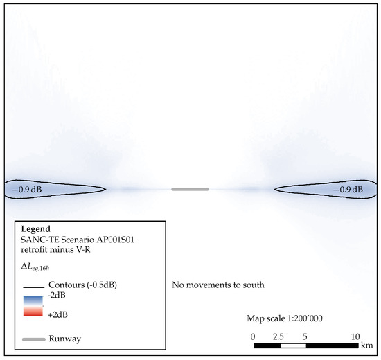 In this step, the authors study the effect of new technologies within entire airport scenarios with the scope to minimize the noise distribution on ground. For this purpose, the aircraft noise simulation tool sonAIR [31] is applied. The tool comprises of a sound source database and a sound propagation model, which are formulated for one-third octave bands within a frequency range of 25 Hz to 5 kHz.