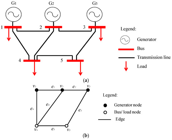 (a) IEEE 5-bus system; (b) Graph representation of IEEE 5-bus system.