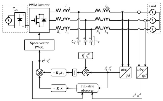 lie within the unit circle. It is worth mentioning that the feedback controller in (23) requires the measurement for all the system states. However, this requirement often makes the system design costly and complicated. In order to avoid this limitation by implementing the integral state feedback controller by using the measurement of only the grid voltages and grid-side currents, a full-state observer is employed for the given system.