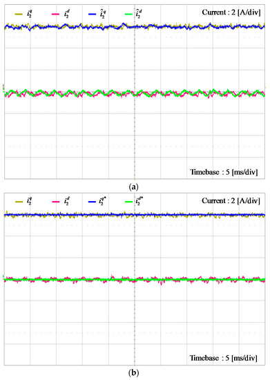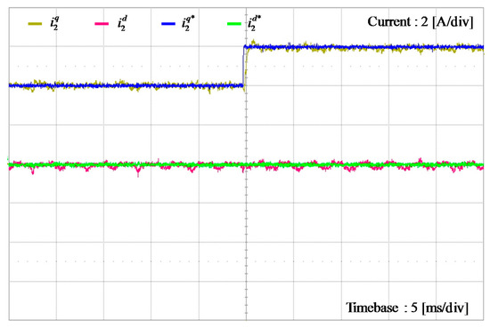 For the purpose of validating the proposed control scheme during transient state, Figure 13 shows the experimental results of the proposed control scheme under the step change in grid-side q-axis current reference, from 4 to 6 A. As is shown, the actual grid-side q-axis current tracks the reference within 0.5 ms. It is clearly confirmed from this result that the grid-side current reaches the reference value with considerably small time delay, which accords well with the simulation result in Figure 7.