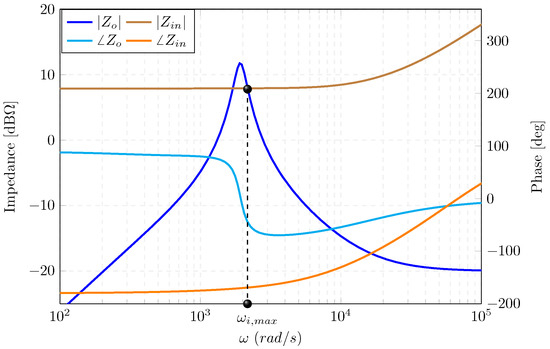 where n is the number of loads. Equations (1) and (2) are valid for the frequencies that are less than the cut-off frequency of the load converter () [8], where the impedance is . Beyond , the load input impedance resembles an inductor impedance. Typical plots of the source output impedance and the load input impedance are shown in Figure 2, [13,24,27]. The proposed stabilization method depends on the maximum frequency () of the interaction region, as illustrated in Figure 2.