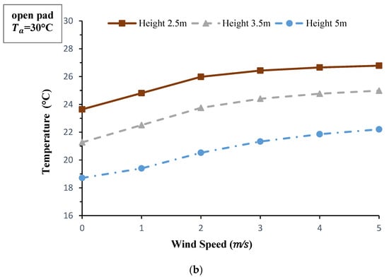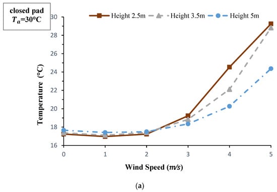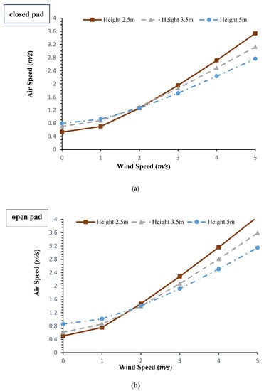 - Increasing the wind speed increases the velocity and the outlet temperature of the air in the column. The temperature rise was especially considerable at wind speeds more than 3 m/s when using the closed-pad mode which subsequently led to a significant decrease in sensible cooling load.