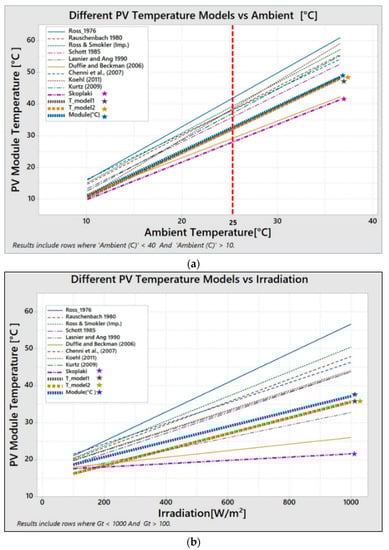 In Figure 5 below, temperature models listed above are plotted against both ambient () temperature and solar radiation ().