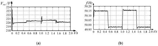 The simulation parameters are shown in Table 3. The valid value of rated voltage of the AC bus was 220 V, and the rated frequency was 50 Hz.