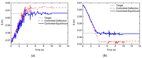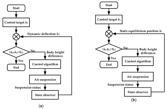 Flow chart of control strategy: (a) Adjustment according to the dynamic deflection; (b) Adjustment according to static equilibrium position.
