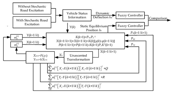 The UKF iteration is carried out using discretization Equations (25)–(27) and this specific process is shown in Figure 6. Using iterative results, suspension deflection and static equilibrium position can be used to adjust vehicle height, so as to compare control effect of different control strategies.