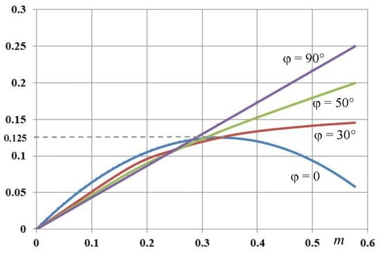 In the case of = 90°, is directly proportional to the value of modulation index m. By observing Figure 5 and by considering the maximum value of modulation index (mmax = 0.577), the following simplification is introduced: