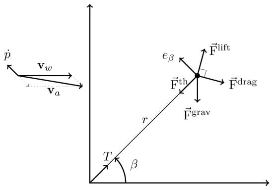 We consider the case in which the drag force is aligned with the apparent wind velocity and the lift force has its upward normal direction (see Figure 2).
