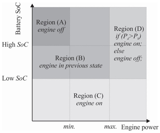 - Hofman, T.; Steinbuch, M.; Druten, R.V.; Serrarens, A. Rule-based energy management strategies for hybrid vehicles. Int. J. Electr. Hybrid Veh. 2007, 1, 71. [Google Scholar] [CrossRef]