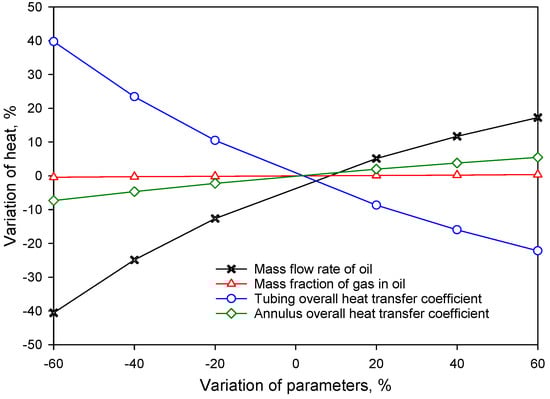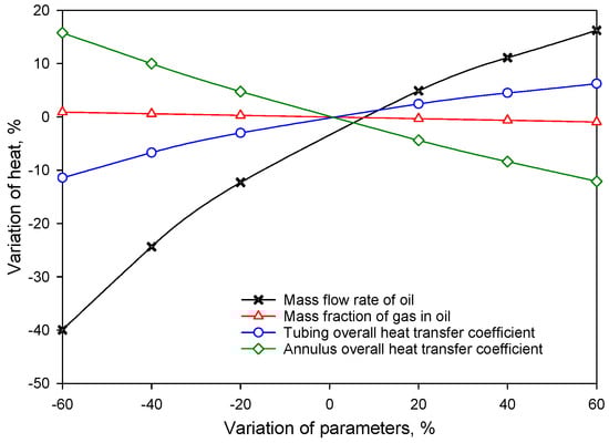 Mass flow rate of oil, mass fraction of gas in oil, tubing overall heat transfer coefficient, annulus overall heat transfer coefficient are shifted 20%, 40% and 60% up or down, respectively; then the resulting temperature change is calculated (Table 2).