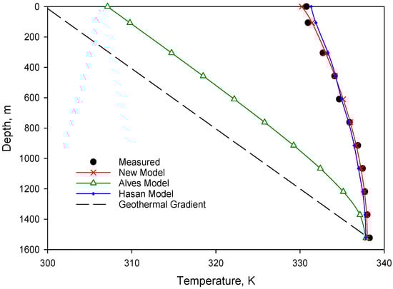 The data for the O’Connor Well also comes from the published work of Hasan []. All the parameters used to compute the pressure and temperature profiles are presented in Table 6. Because the geothermal gradient was not reported, we obtained a match by adjusting it.