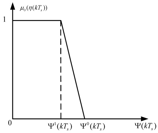The expected shedding ratios range between 0 and 1. However, if the calculated is too small, then the required shed load at the corresponding customer might be barely greater than the disturbance, leading to insignificant shedding contribution to the entire load reduction. Even though some of the calculated shedding ratios are insignificantly small, the control center still needs to send these ratios one by one to the corresponding gateways at customer sites, leading to inefficient communication efforts. To avoid obtaining insignificantly small values, a lower bound is assigned to the shedding ratio. Therefore, the calculated shedding ratio in the optimization is constrained between 0.1 and 1, as in (7). The sign “” in (8) symbolizes that the inequality is in essence with fuzziness. The load curtailment due to TWDLC in (8) could be considered as a soft curtailment because the load shed quantity is allowed to vary within a soft range. The fuzzy constraint of (8) is described by the membership function , as illustrated in Figure 2, where the tolerance for the fuzzy constraint is represented using two coefficients . Denote as the calculated shed load, that is,