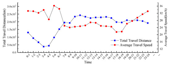 The average travel speed and total travel distance are highlighted in Figure 11, which exhibit a roughly negative correlation and considerable fluctuations.