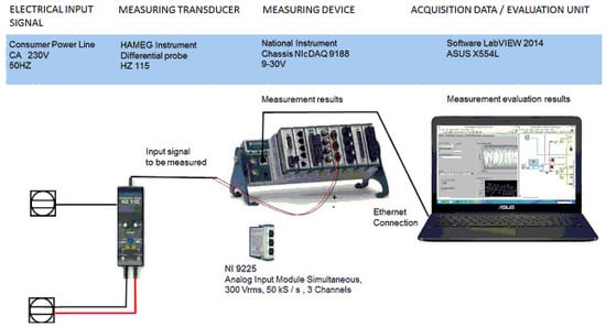 Hereinafter, four case studies are analyzed in order to illustrate the proposed method. The experimental arrangement is shown in Figure 1. Data acquisition has been performed using a portable unit and a differential probe.