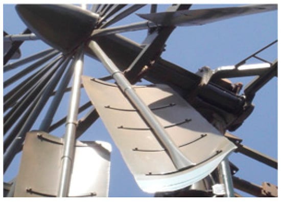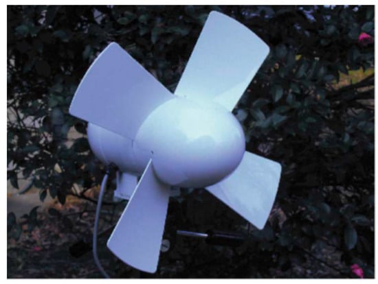 The airfoils and fans discussed above could be used for wind turbines but has to be tested and studied further before using it in a wind turbine. Some studies on the airfoil blades used in wind turbines have been found in the literature. In this context, Rocha et al. [109] designed a blade with cambered and symmetrical airfoils, NACA0012 and NACA4412 respectively, and used it in small scale wind turbine and concluded that the cambered airfoils had the higher power coefficient than the symmetrical airfoils and hence, should produce more power for the same wind speed. A wind-tunnel study of a horizontal axis wind turbine was carried out by Grant et al. [110] to observe the behaviour of the vorticity trailing from the turbine blade tips. The LSV technique was used to trace the wake which highlighted key features of the wind-turbine wakes and its interaction with wind tunnel wall. An experimentally studied small wind turbine results have been reported by Hirahara et al. [111]. Energy output, power coefficient and torque of turbine were obtained for a range of wind speeds. The flow around the blades was visualized by PIV (Particle Image Velocimetry). The maximum power coefficient for their turbine obtained is 0.4 which is good enough for a small-scale turbine. The image of this small four-bladed wind turbine is shown in Figure 8. The International Electrotechnical Commission (IEC) Standard for small wind turbine safety, IEC 61400-2, defines a small wind turbine as having a rotor swept area of less than 200 m2 which corresponds to a rated power of about 50 kW. Until the beginning of the twentieth century, all wind turbines were small, at least in terms of power output, and were used for water pumping and milling rather than producing electricity, Wood [112]. This book demonstrates that, a century later, small wind turbines can be designed and built to avoid many of the problems that faced Grim-wade.