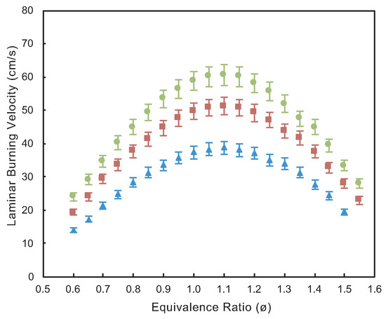 - Wu, X.; Huang, Z.; Jin, C.; Wang, X.; Zheng, B.; Zhang, Y.; Wei, L. Measurements of laminar burning velocities and Markstein lengths of 2,5-dimethylfuran-air-diluent premixed flames. Energy Fuels 2009, 23, 4355–4362. [Google Scholar] [CrossRef]