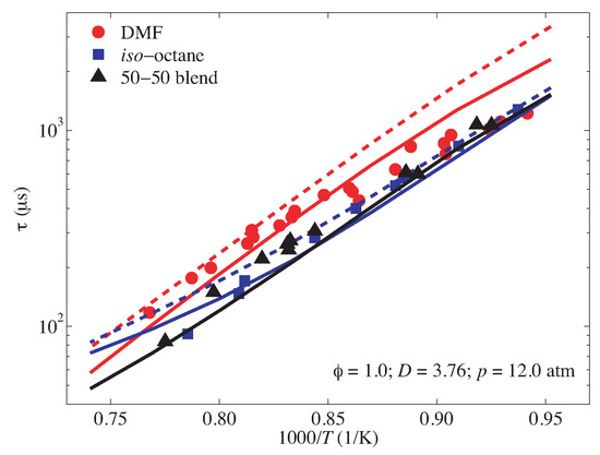 - Li, Q.; Fu, J.; Wu, X.; Tang, C.; Huang, Z. Laminar flame speeds of DMF/iso-octane-air-N2/CO2 mixtures. Energy Fuels 2012, 26, 917–925. [Google Scholar] [CrossRef]