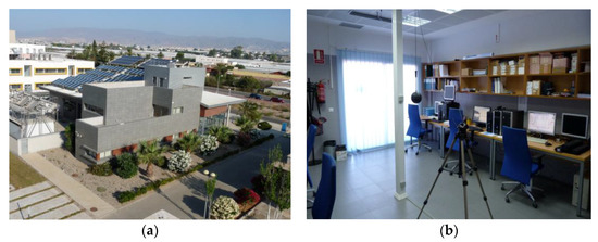 Center for solar energy research (CIESOL) building (a) and the laboratory under study (b).