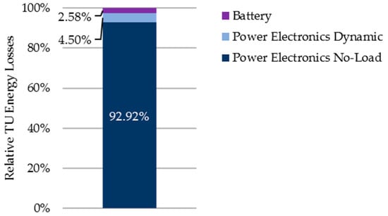 The analysis shows that in total the no-load losses lead to 92.92% of the overall losses of the TU. The battery losses and the dynamic PE losses are in comparison much smaller.
