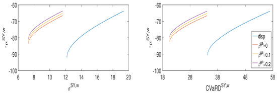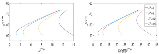 Figure 1 depicts system portfolio frontiers in the plane (left panel), and in the plane (right panel) for each CO price volatility scenario (in this paper the confidence level for the CVaRD risk measure has been taken equal to ).