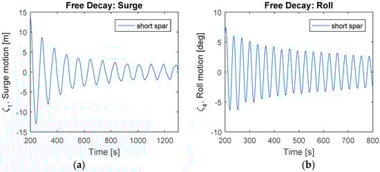 Figure 4). Free decay tests were carried out in calm water. The wind turbine was parked without any aerodynamic loads on the rotor, and one specified force acted in each of six degrees of direction with a very short period (200 s) to simulate its dynamic response.