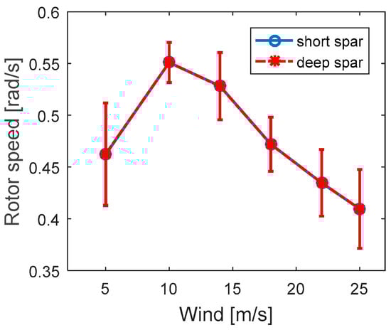 The rotor speed of the short spar VAWT and deep spar VAWT under all loading cases are plotted in