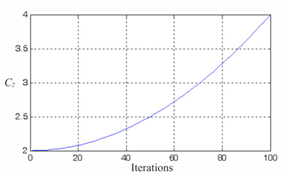 Trend of the social learning factor (C2) of the modified PSO.