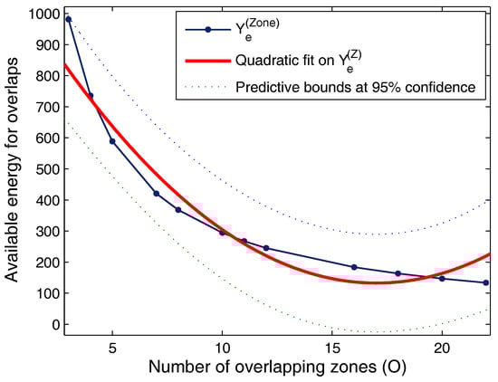 Available energy for overlapping zones for time t vs. increasing number of overlaps.