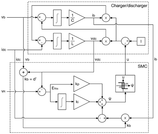To avoid the bandwidth constraint imposed by the cascade solution, the work reported in [15] uses a unified sliding-mode controller for the charger/discharger, as illustrated in Figure 3. Since this solution does not require any model approximation, the voltage control can be designed with the highest bandwidth possible, which provides a faster response compared with the cascade solution. Therefore, the unified controller has higher speed, which improves its ability to compensate perturbations. Moreover, since the SMC is designed using the non-linear model of the DC/DC converter, it ensures the system stability and desired performance in any operating conditions, which provides a safe operation in the entire operation range.