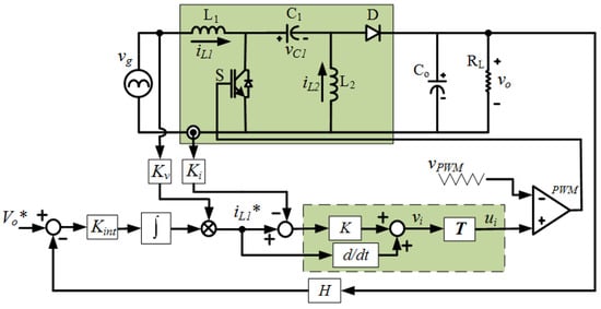 Finally, Figure 9 shows the control system in the FLC approach, where the function T represents the relation between the auxiliary variable and the controller output . Such a function can be obtained by solving the expressions (16)–(18). FLC and PBC control equations for CCM and DCM SEPIC are summarized in Table 3. Note that PBC has the same first Equation (16) and three morestate equations.