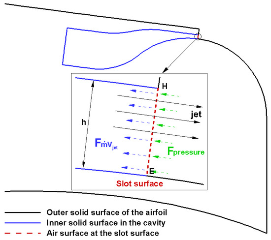 where is the jet mass flow rate, Vj is the jet velocity, ρ∞ is the free-stream density, V∞ is the free-stream velocity, and S is equal to the chord length c for the present two-dimensional cases. According to the momentum theorem, the numerator is a thrust force in the opposite direction of the jet flow which is perpendicular to the slot surface. Therefore, Equation (1) can be rewritten as