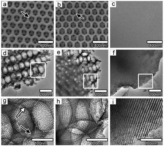 Representative SEM and TEM micrographs of macro-mesoporous titania films. (a,d,g) without grapheme; (b,e,h) with grapheme; (c,f,i) Representative SEM and TEM micrographs of pure mesoporous titania films (Reprint from [41] with permission from the American Chemical Society. Copyright 2011).